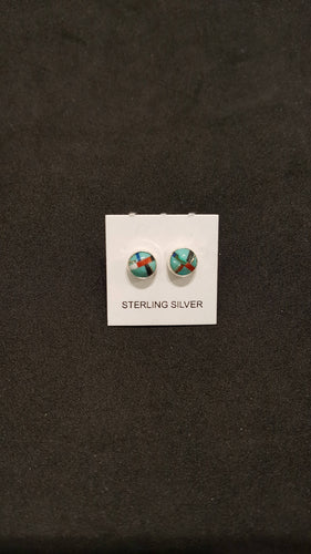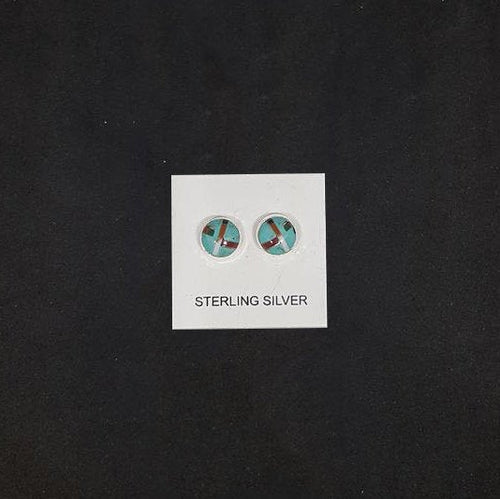 6 mm micro inlay turquoise stud earrings - sterling silver