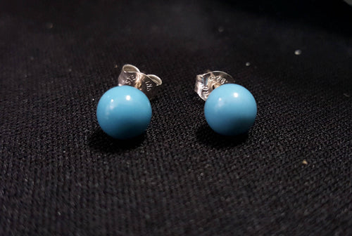 6 mm Sphere Sleeping beauty Turquoise sterling silver stud e...
