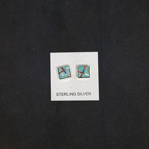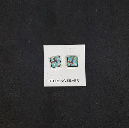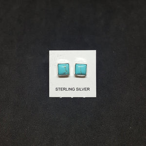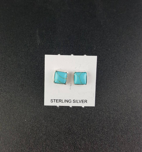 6 mm square Kingman turquoise Sterling silver stud earrings