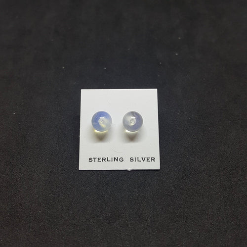 6 mm round Light Blue Fire Opal sterling silver stud earrings