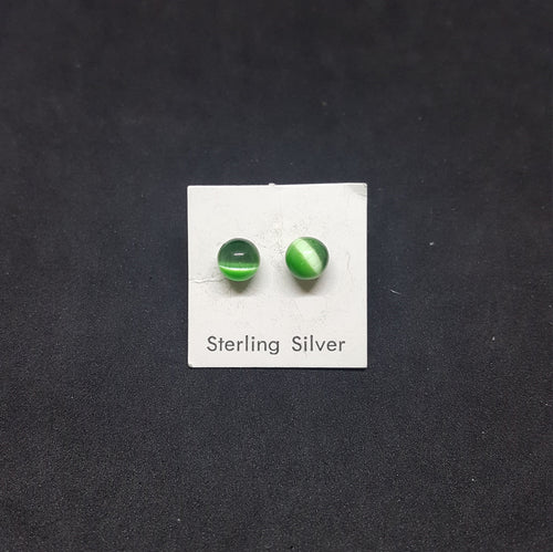 6 mm Sphere Green Cat Eyes stud sterling silver earrings
