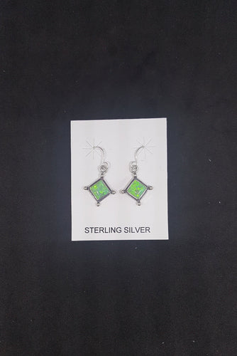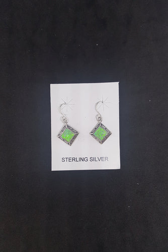 6 mm Green Fire Opal diamond shape sterling silver dangle ea...