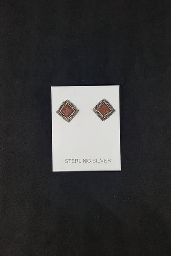 6 mm Red Fire Opal diamond shape sterling silver dangle earr...