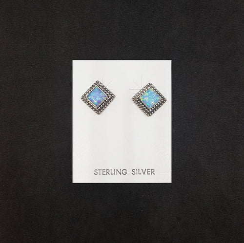 6 mm White Fire Opal diamond shape sterling silver dangle ea...