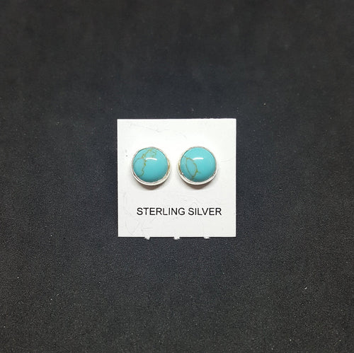6 mm round Kingman Turquoise sterling silver stud earrings