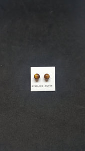 6 mm Sphere Tiger Eyes stud sterling silver earrings