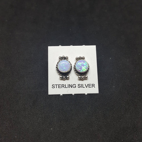 6 mm round Blue Fire Opal sterling silver stud earrings