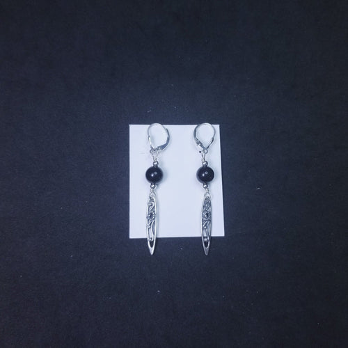 6 mm Sphere Black Onyx with long thin sterling silver dangle...