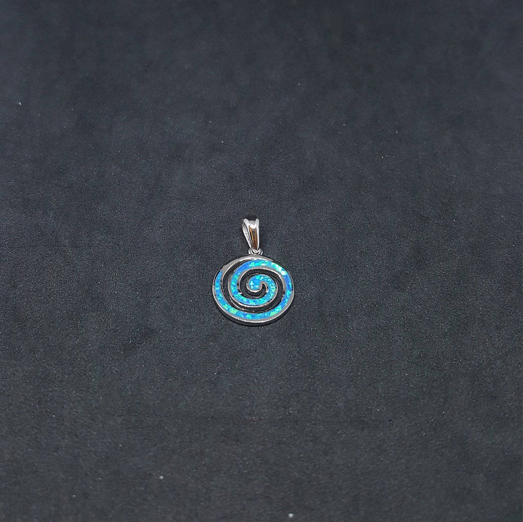 15 mm Spiral Blue Fire Opal Sterling Silver Pendant
