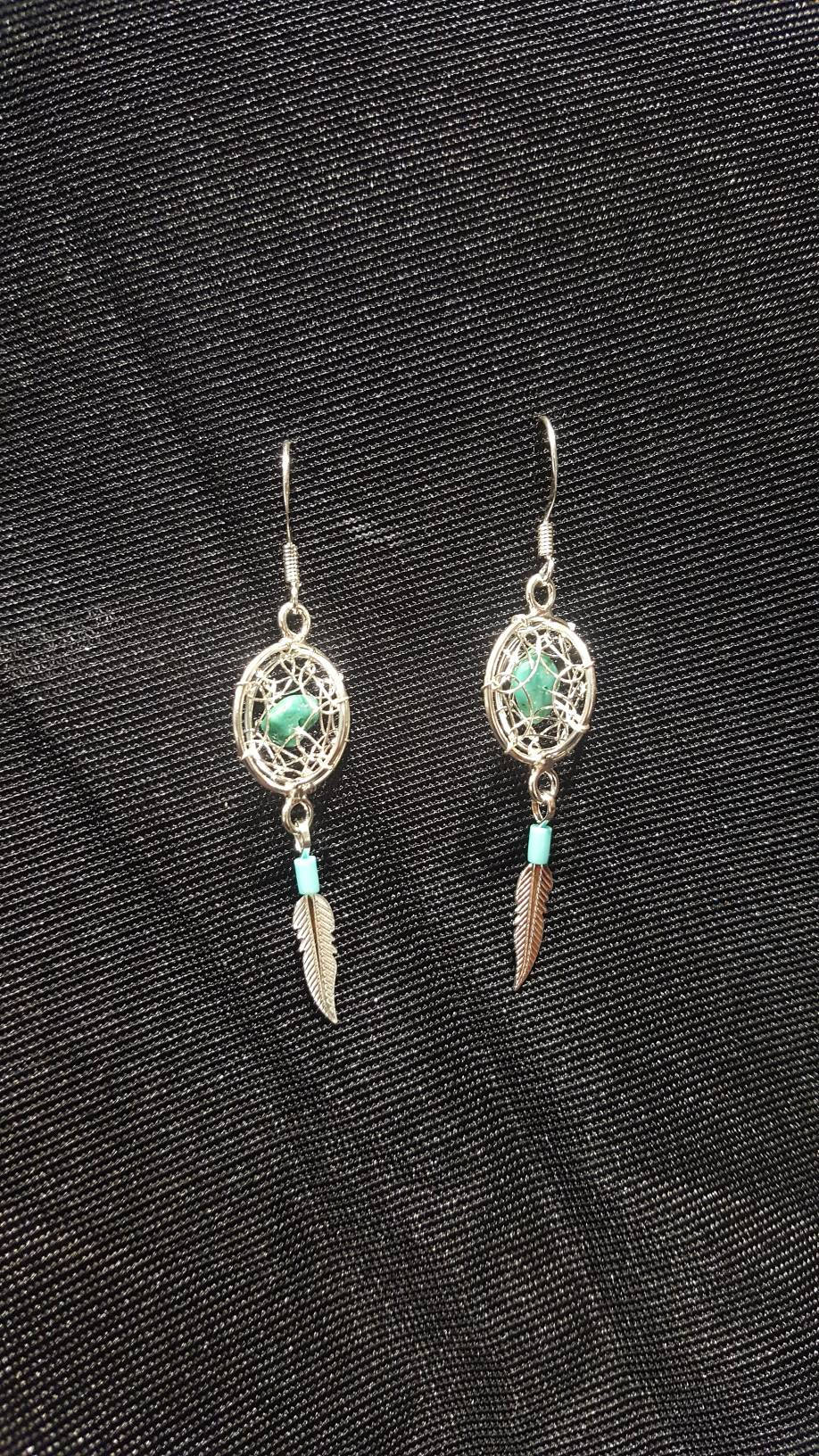 3D dream catcher earrings Turquoise stone Made in USA