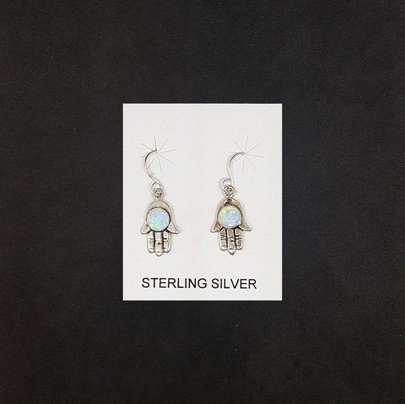 5 mm round light Blue Fire Opal Hand shape sterling silver dangle earrings