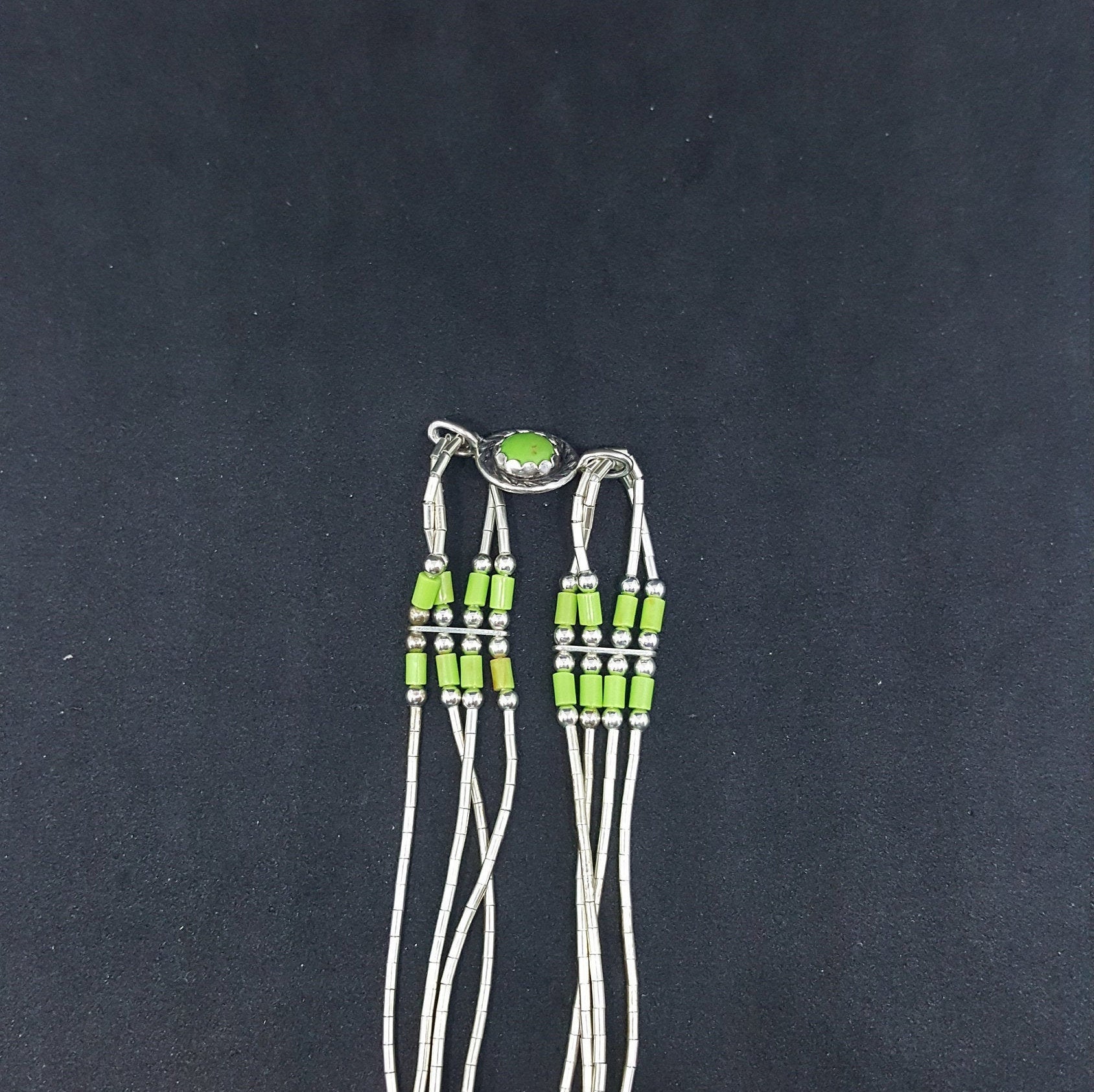 Round Gaspeite twisted design Sterling silver Beaded bracelet Length: 7 inches