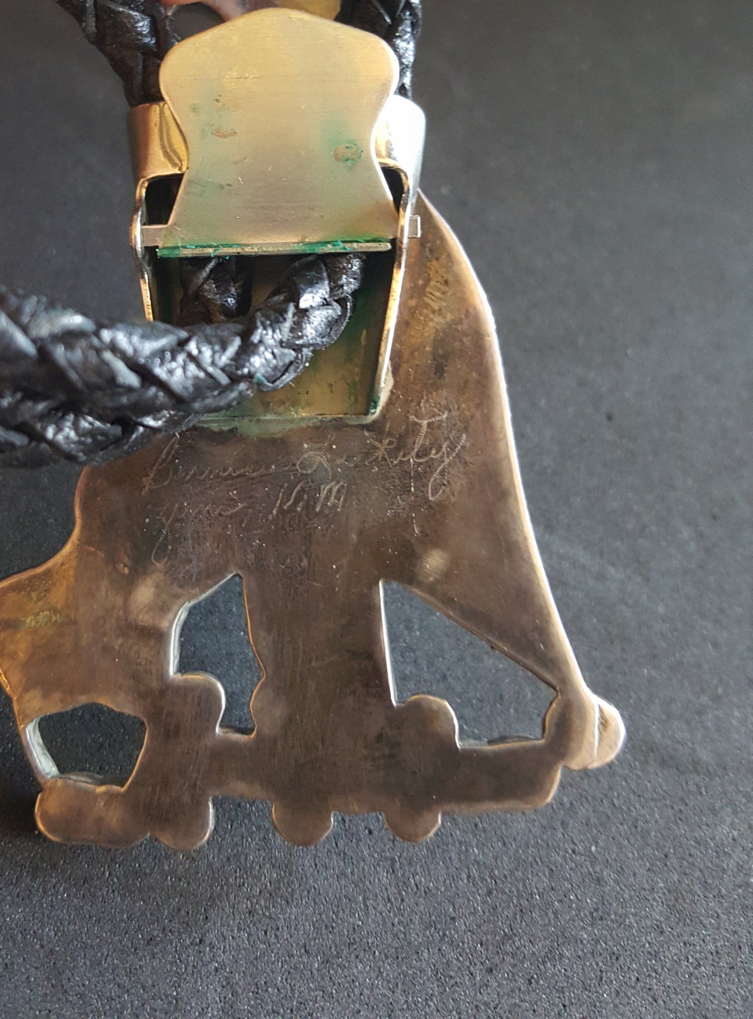 American Bald Eagle (2 1/2 inches x 1 1/2 inches) Zuni black onyx mother of pearl turquoise sterling silver Bolo tie vintage SIGNED