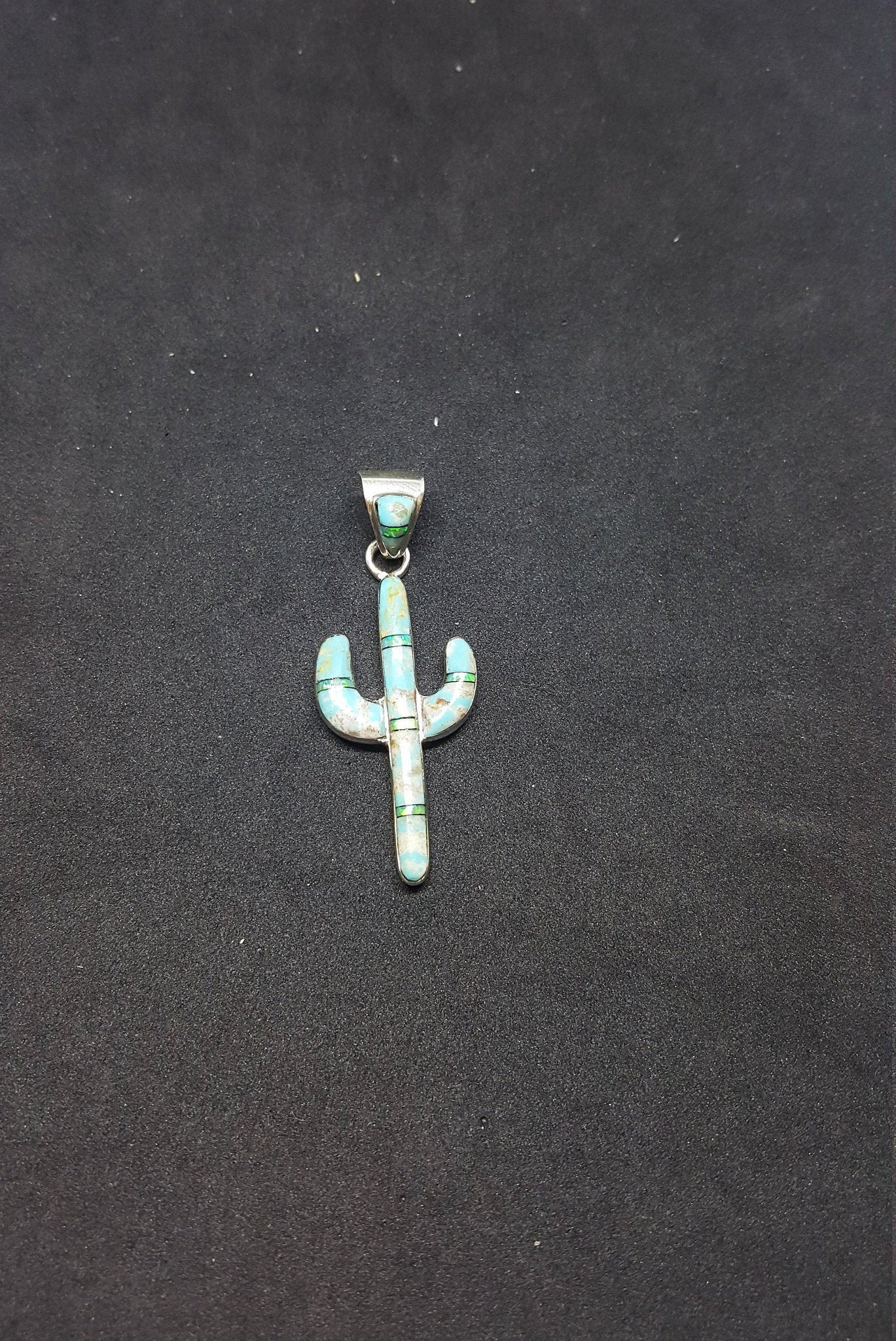 Cactus Kingman Turquoise Blue Fire Opal sterling silver pendant necklace