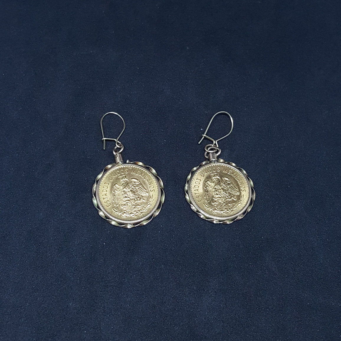 Cinco Pesos Mexicanos Golden Coin dangle earrings